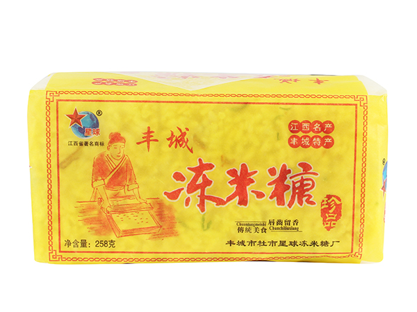 豐城市杜市星球凍米糖廠,是豐城食品生產中的地方傳統名產品。相傳已有兩百多年的生產歷史,以“江南小切,而出名。每年中秋一過,農村家家戶戶把糯米飯涼干,炒成爆花米,用米糖拌粘,切成塊塊,待客解茶。這種糕點叫做“炒米糖”、“米花糖塊”。更講究者,用糯米飯做成凍米“干飯”,再用清茶油煎泡“干飯”,使“干飯,變成爆花米,再用飴糖粘結,冷卻后用薄刀切成小塊,前后經過半成...